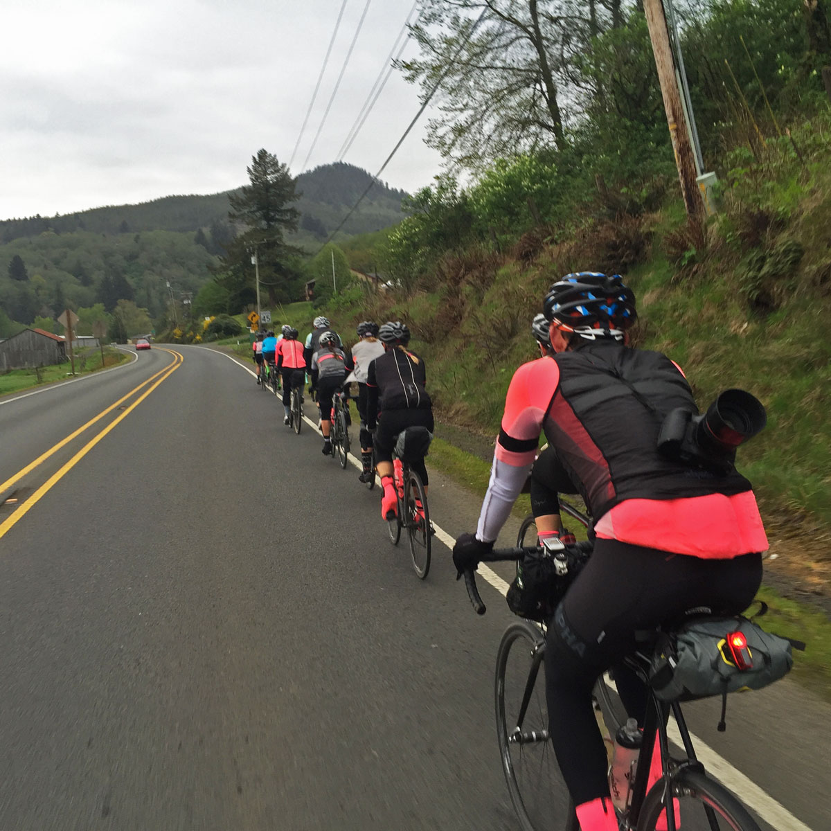 First off, the orchestration and events at the start and destinations were really well organized and of the expected high caliber. The rollout from Portland was neutral and in a couple of waves, the atmosphere mellow. The route I had actually ridden a few times in the past, so I knew what to expect, amazing scenery and Oregon splendor. The roads to the seaside are small and not frequented by many cars, the main road is a twisty winding road with some sharp climbs that travels alongside a river called the Upper Nustecca.