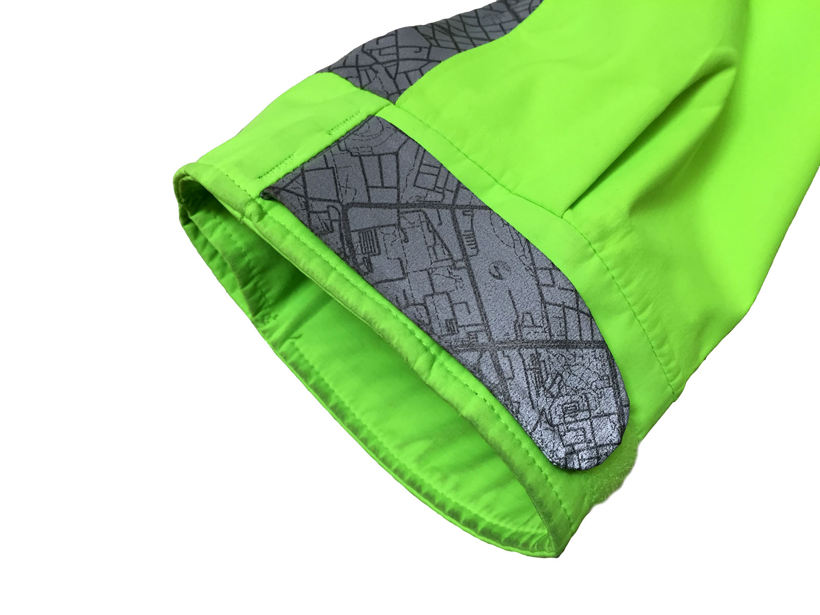 The body of the Torch is made with 2 materials – MapReflect Reflective material and hi viz trim panels from Elite brand fabric. The MapReflect material is highly reflective and bounces back light from motor vehicles and street lamps, so that you can be seen better. Nike has a similar material called Flash. In this case, the material also has a nice subtle street map print on it, made up for a combination of 11 cities (You can see Portland’s Ladd’s Addition in there really easily).