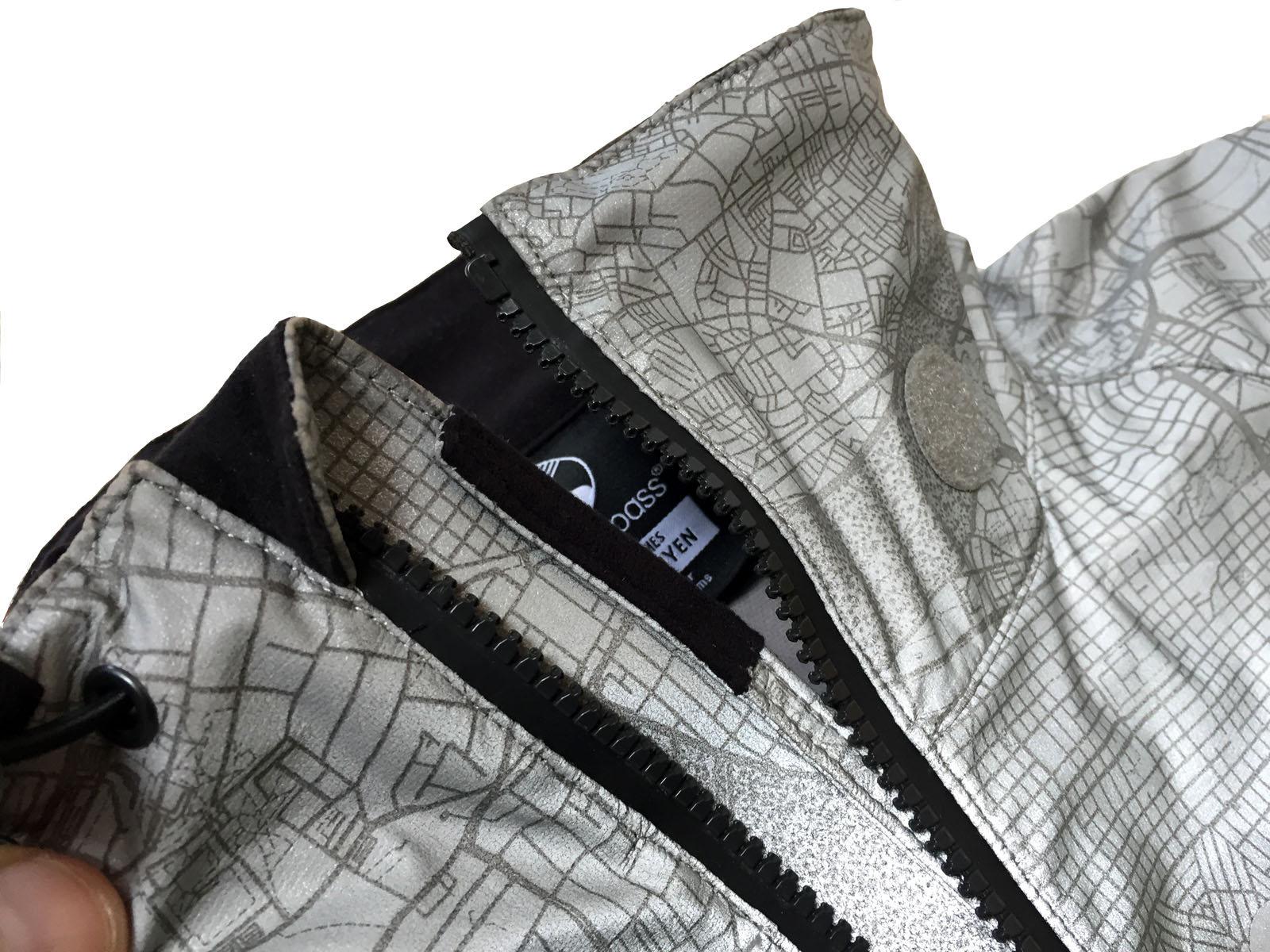 The niceties. I didn’t focus on it too much but the jacket has a map print on it. This is a top surface print on the reflective material, it’s interesting up close and adds a nice touch. You can see areas of Portland and when I investigated more it seems the map is a composite of 11 international cities known for cycling . This aspect gets chatted up when someone notices in the office and they can spot Ladd’s Addition.