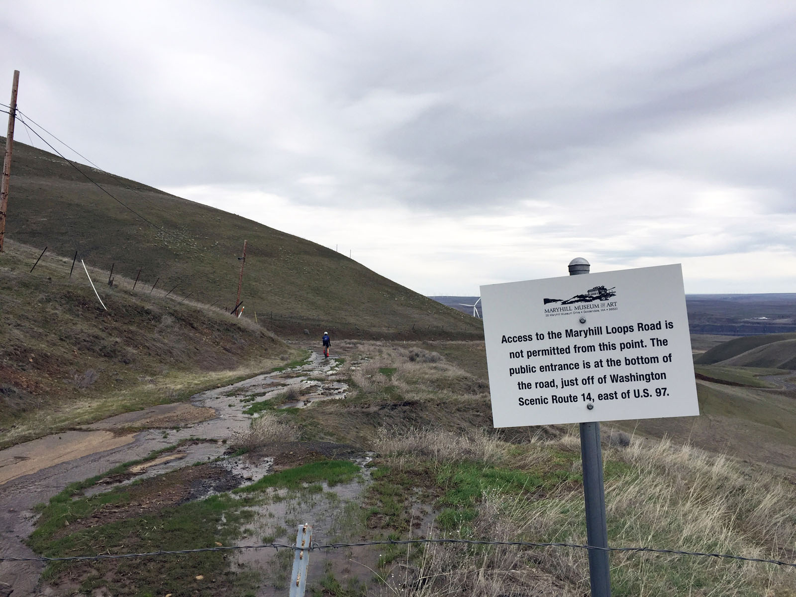 The route takes you on highway 97 for less than 1/2 mile then drops into what is known as the Maryhill Loops, this is a strip of road (closed to cars) that back in 1911 was built under Sam Hill to test the turn and grade capabilities of road making equipment. It makes for a really fun twisty descent of about a mile long. (Interesting fact: this design enabled the twisty descent down from Crowne Point on the Oregon side) Word of warning here, to access the top of the Loops you actually have to trespass an abandoned driveway for about 100ft, if you are not into this there is a simple route around down the nearby highway but you will miss the Loops. (2023 – the top of the road has a low chain across it, presume to keep cars out)
