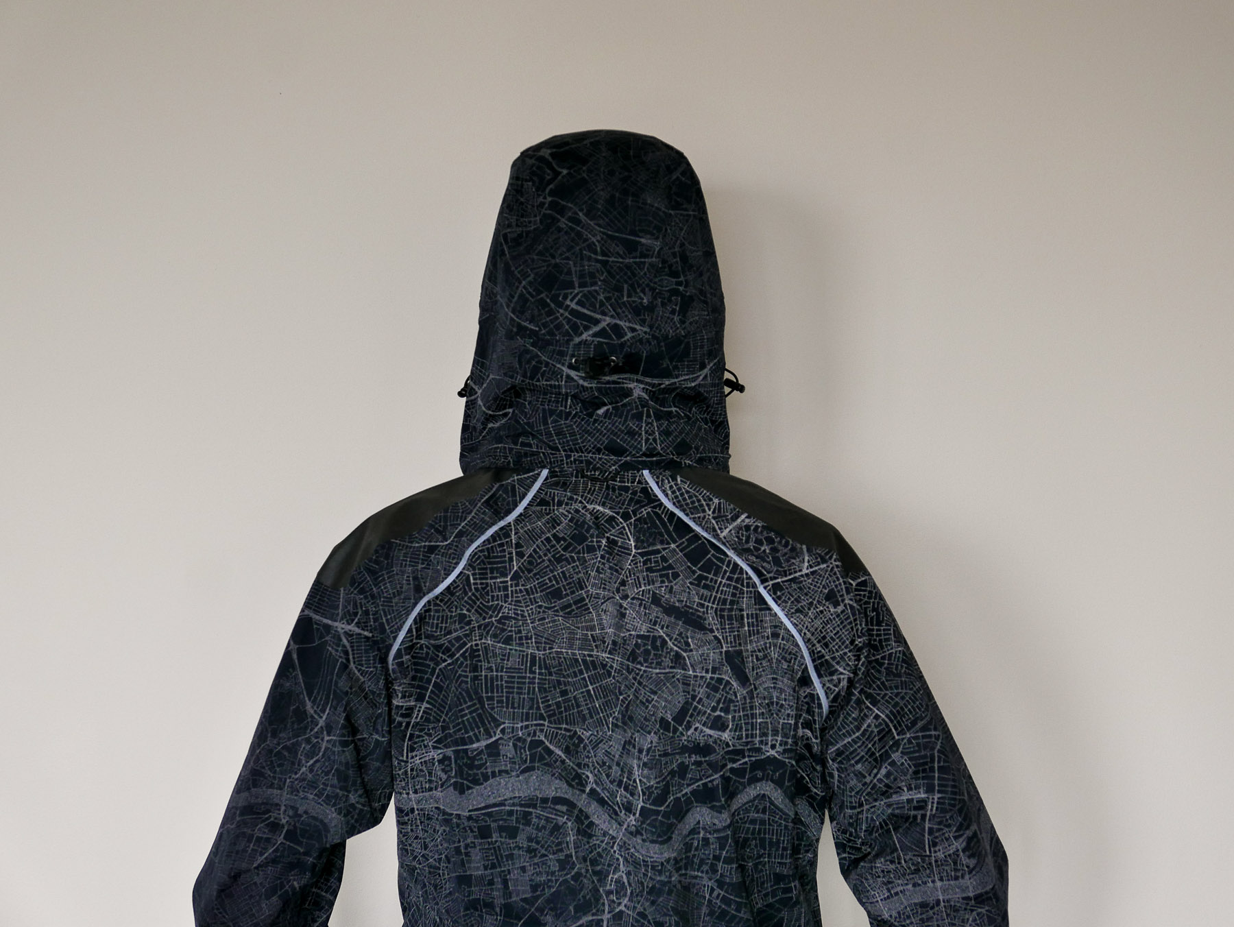 - The reflective map-print on the jacket looks cool in the daylight and lights up bright at night, keeping you safe.