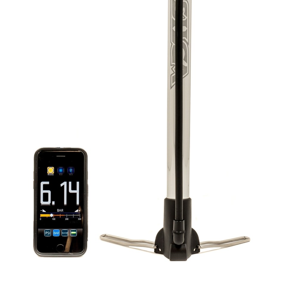 First thing you notice is the lack of pressure dial – No pressure dial is mounted on the pump to save space and weight. The smartphone gauge is driven by a Bluetooth pressure sensor located in the barrel at the base of the pump. This sensor transmits tire pressure data to SILCA’s iGauge smartphone app to within +/-0.5 PSI