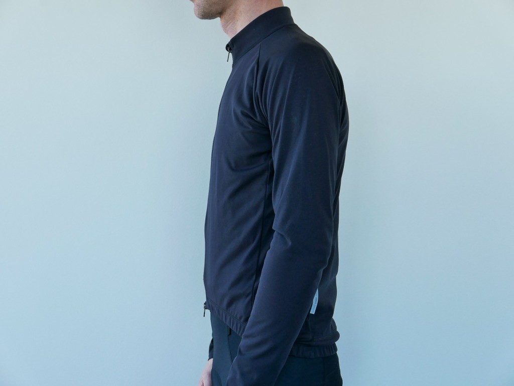 Versatility – The biggest thing is offering great protection that you can wear across a span of temperatures and changing weather. Start at 40degress and rain sprinkles, end at 56degrees and sun. The jacket material is fairly thin, so there is not a ton of heat insulation. Should you really overdress or choose the wrong gear, it’s small enough to put in your jersey pocket. This only happened to me once, but its highly windproof and reasonably water resistant, (note not a continuous downpour).