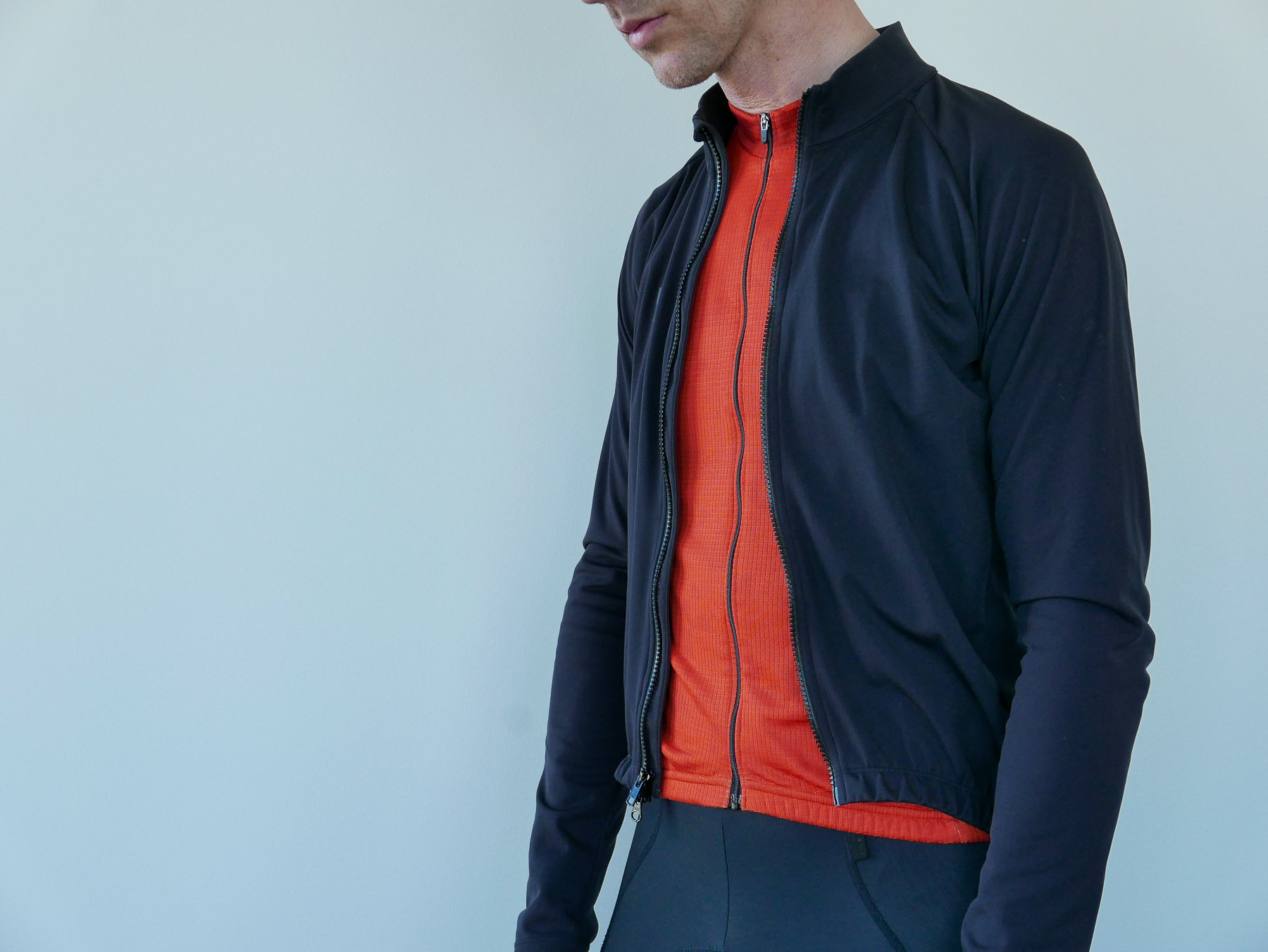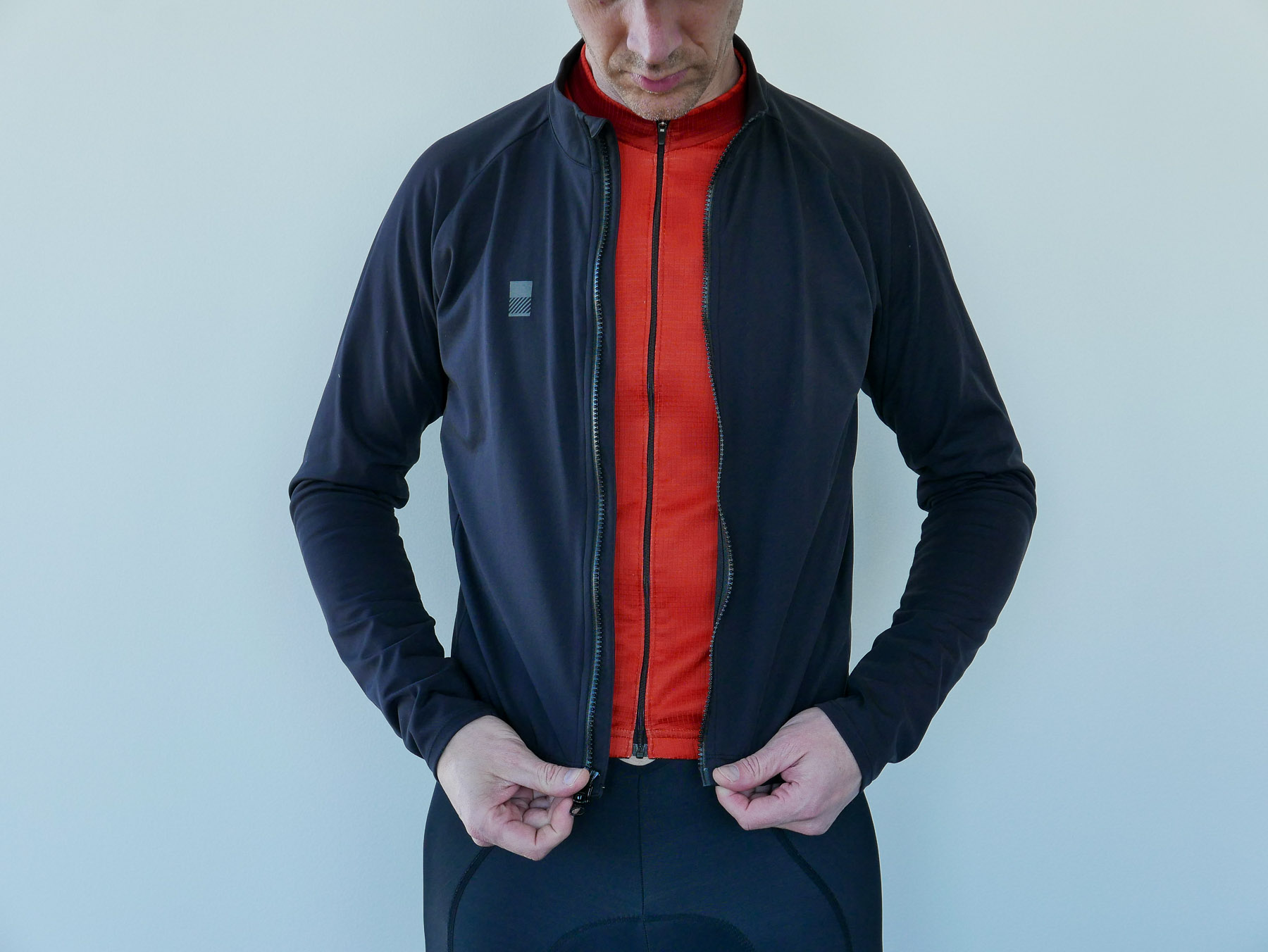 Versatility – The biggest thing is offering great protection that you can wear across a span of temperatures and changing weather. Start at 40degress and rain sprinkles, end at 56degrees and sun. The jacket material is fairly thin, so there is not a ton of heat insulation. Should you really overdress or choose the wrong gear, it’s small enough to put in your jersey pocket. This only happened to me once, but its highly windproof and reasonably water resistant, (note not a continuous downpour).