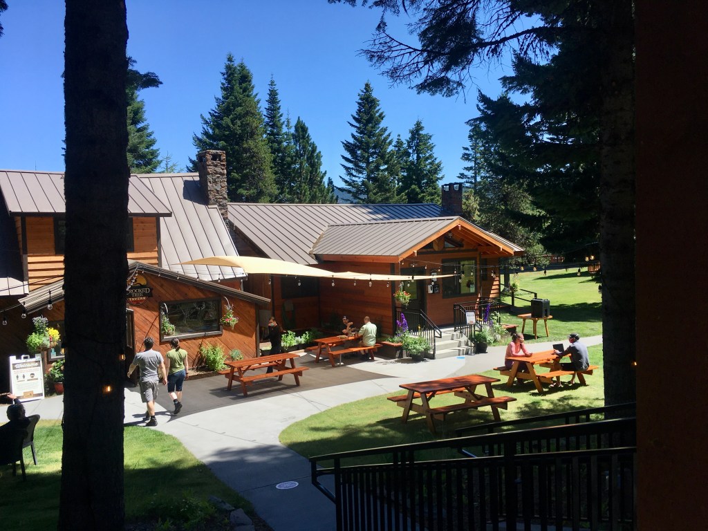 and up to Cooper Spur summit. It’s not a massive climb of 530ft and its fairly gentle windy road up through pine trees with a great high desert smell and toasted pine needles. At the top is the home of a lodge and ski area. The lodge has a small restaurant, even a bike rack and are very friendly, should you need water. Don’t chill too hard though, you are only 34miles in.