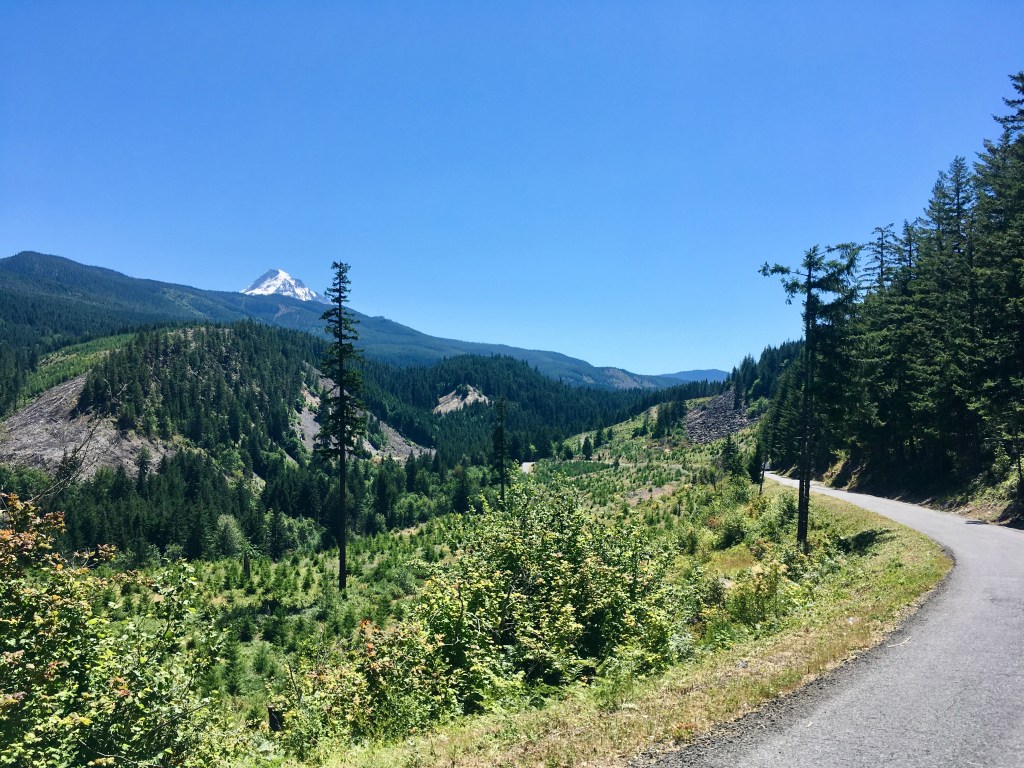 Starting in Welches, there are a couple of options to go up and around the south side of the mountain. Some backroads or riding on the shoulder of the highway. In the past I have done both, and to be honest I have a little bit of preference for the lush views, forested valleys and snow cap mountain that you see from the highway. The backroads way is ok, but it eliminates the views and the cars. If you head out early enough, (which you should on this ride, for temps and because its a long ride) there will be low traffic, the shoulder is 4 sometimes 7feet wide and you are always on the best side for turnoffs, stops and picture taking of amazing views into the valley and to the top of the mountain.