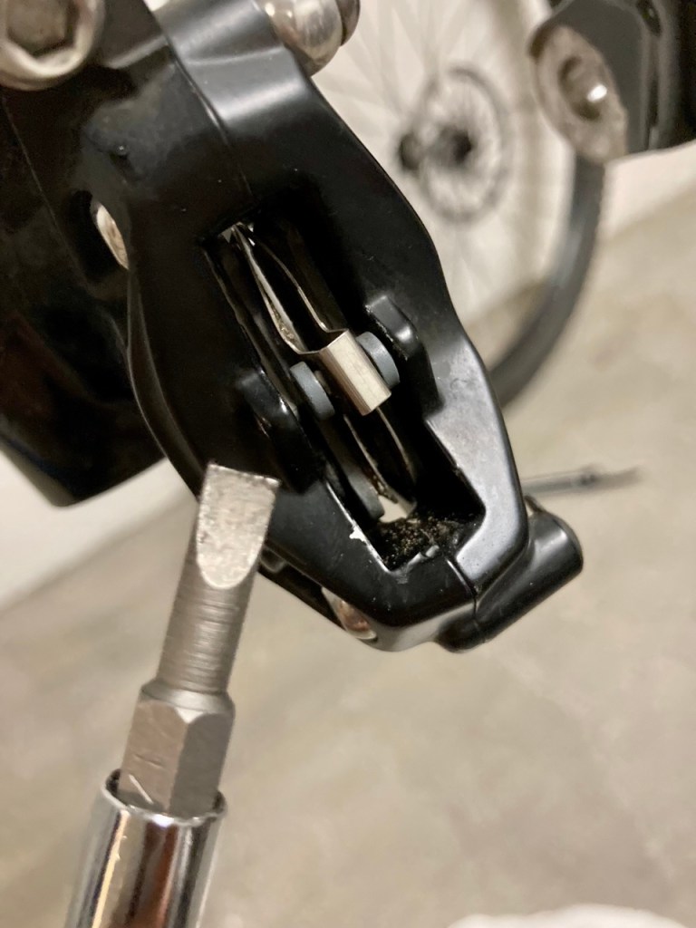 Tools you will need. – Plastic tyre lever, (Pedros is great) 2.5mm allen wrench. Clean rags, Isopropanol alcohol (~$3 32oz). A 5mm, 6mm or T25 wrench to adjust calliper bolts, and of course new brake pads.