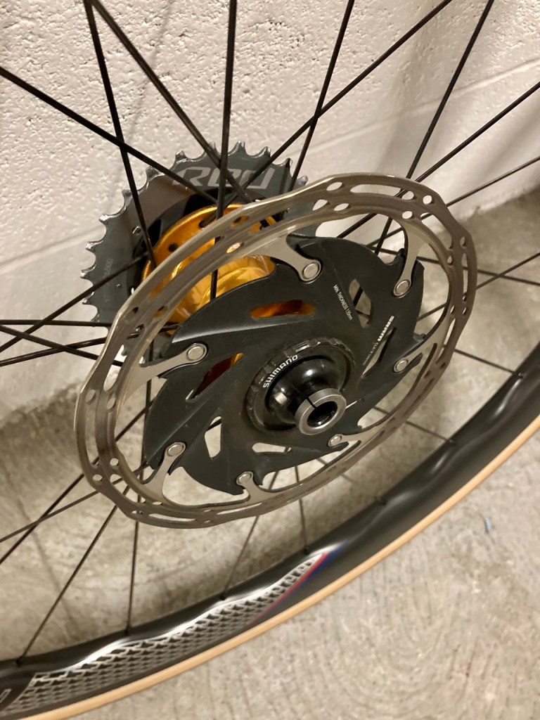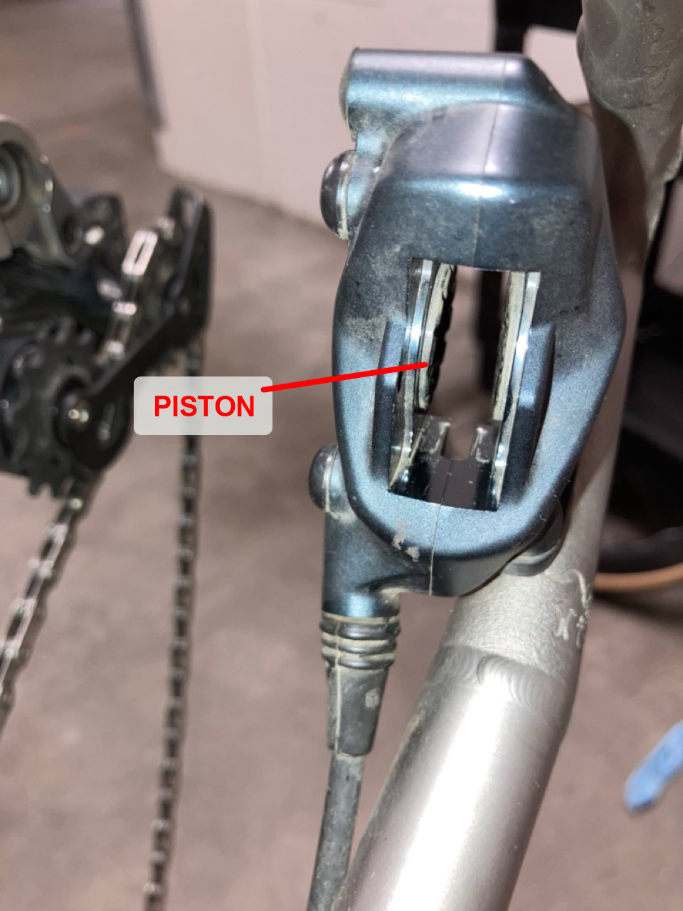 - Switching back to the bike, ensure there is a nice wide gap between the new pads you installed, then put the wheel back on the bike.