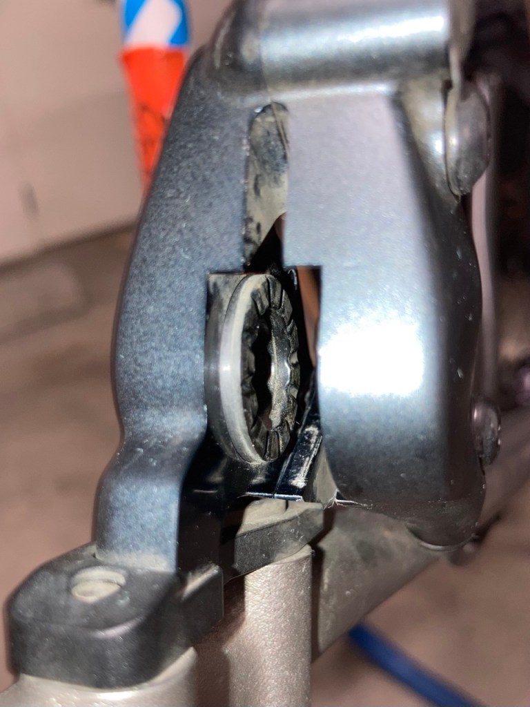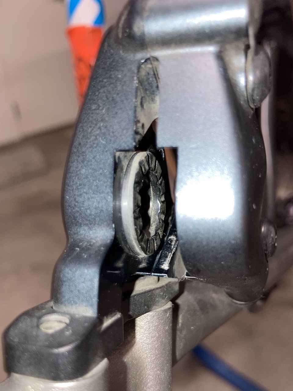 - Use the plastic tyre lever to angle and push the pistons back into the caliper so that the pistons are flush and tucked away, allowing you to install new pads easy. Plastic is important as it wont damage the pistons.