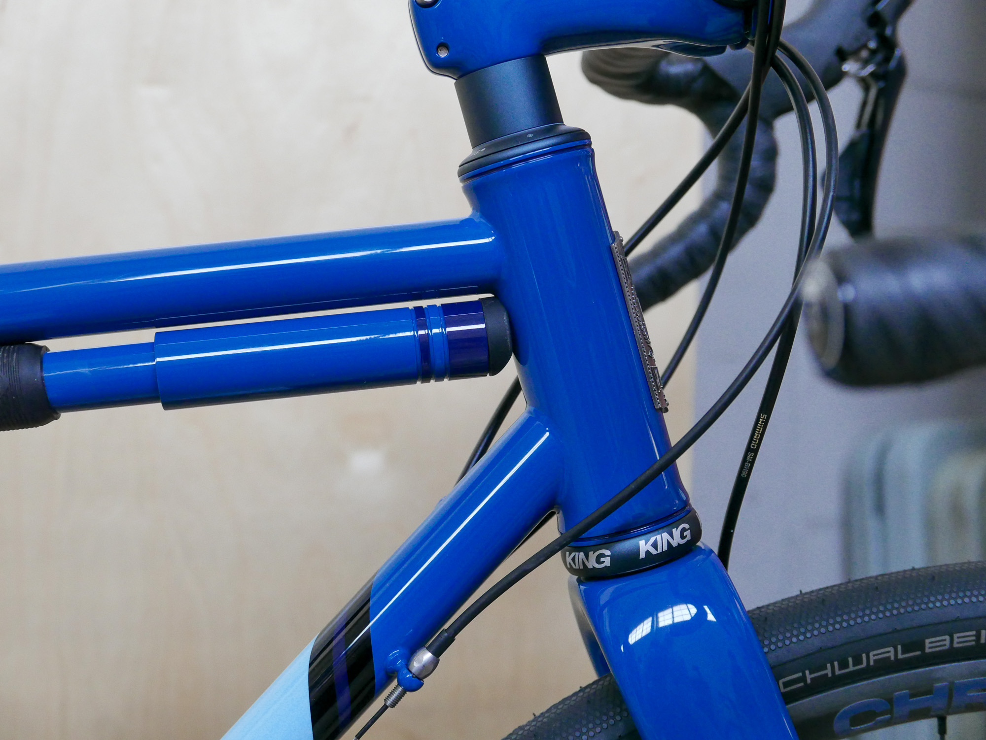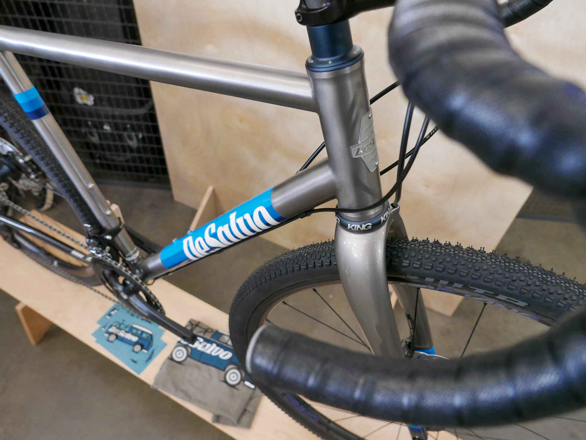 Moots (@mootscycles) were showing off a new road / allroad bike called the CRD. The clean look of the front end came from some help from Chris Kings AeroSet headset which routes the brake lines through the headtube while still using two 44mm cups. Look how clean the front of that Moots looks!