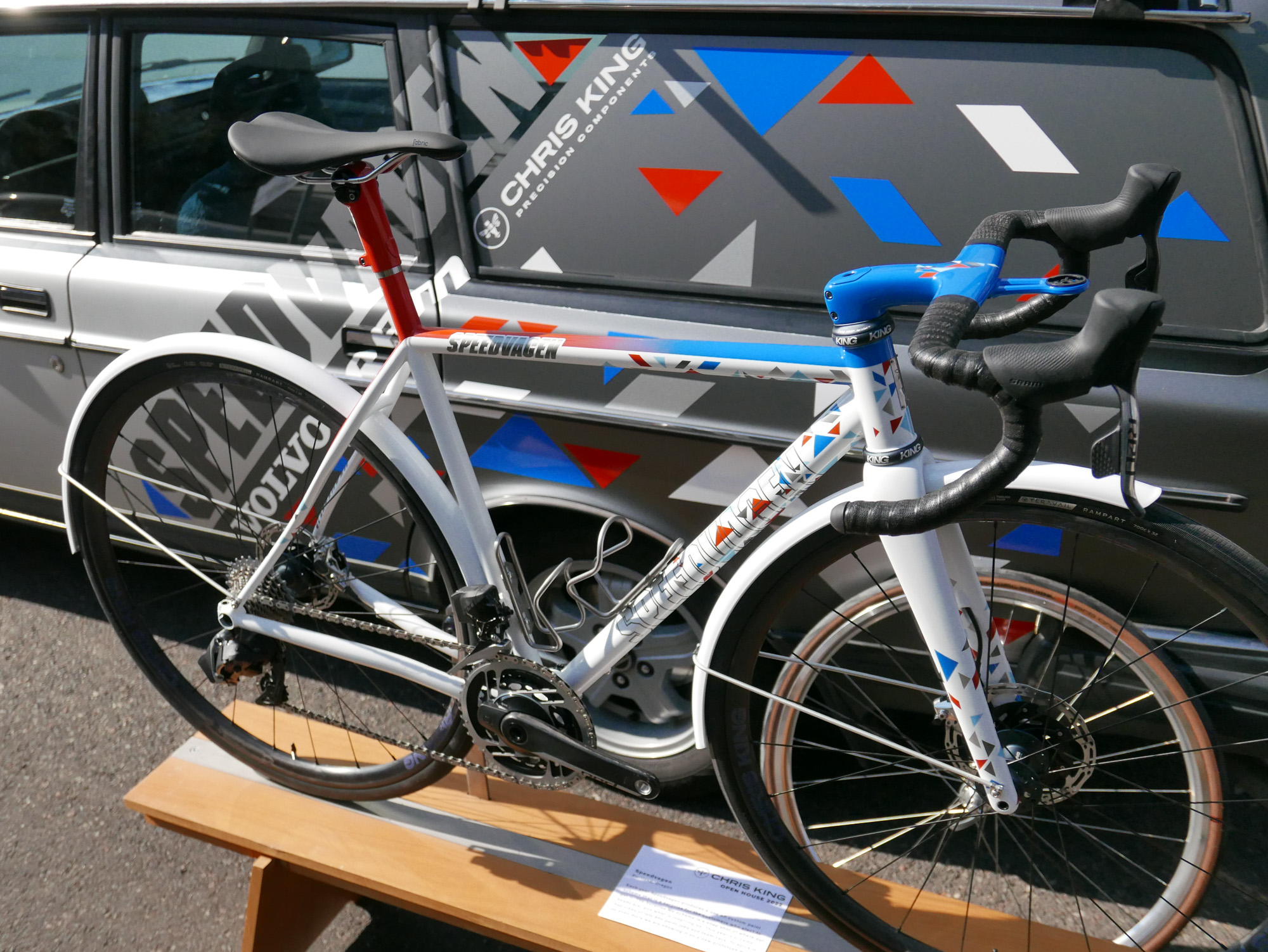 Not only did Speedvagen (@speedvagen) bring a ritzy new bike to the show they also tricked out their Volvo and sauced up a classy downtube shifter number with the same modern paint scheme. Boom.