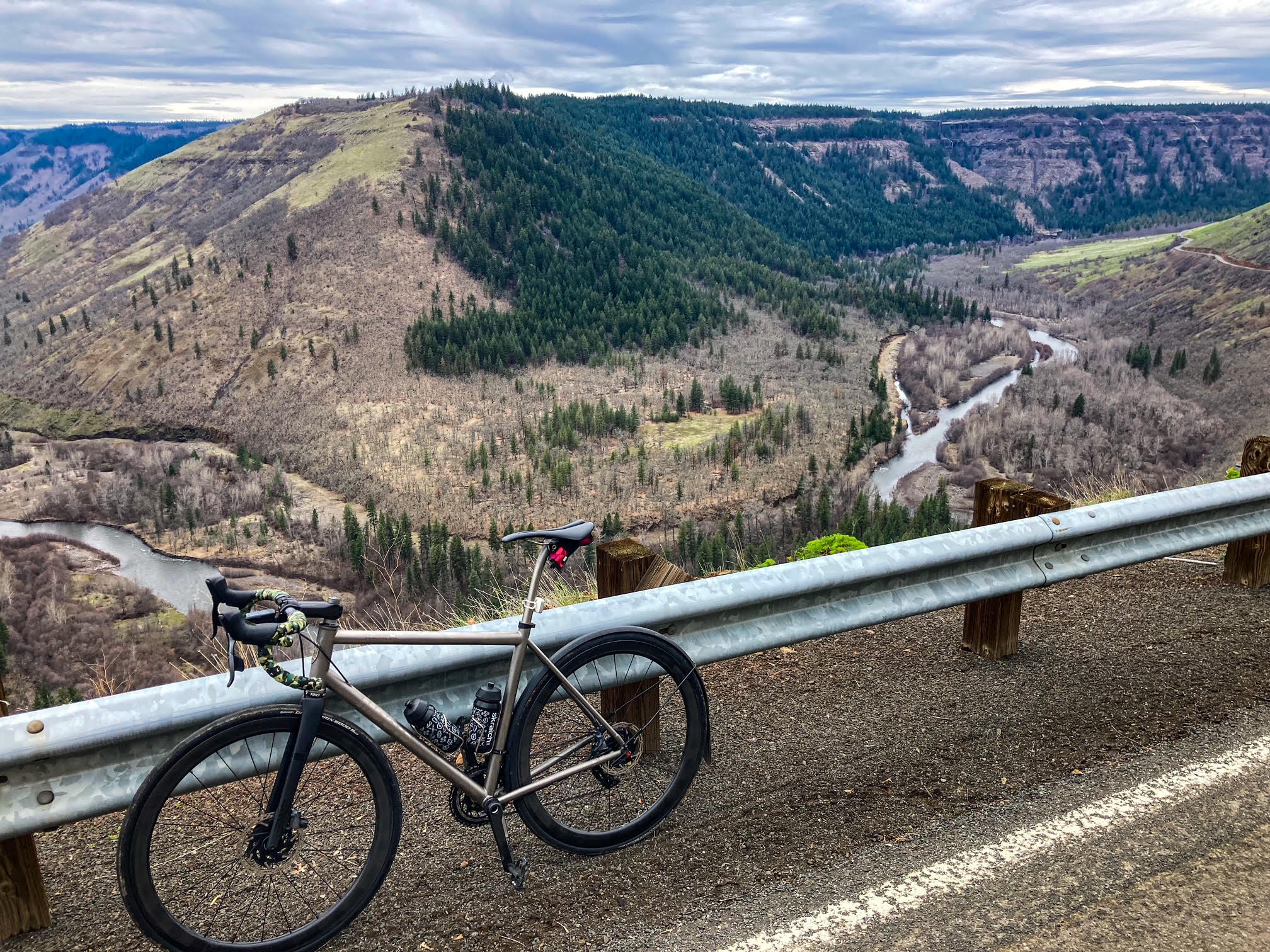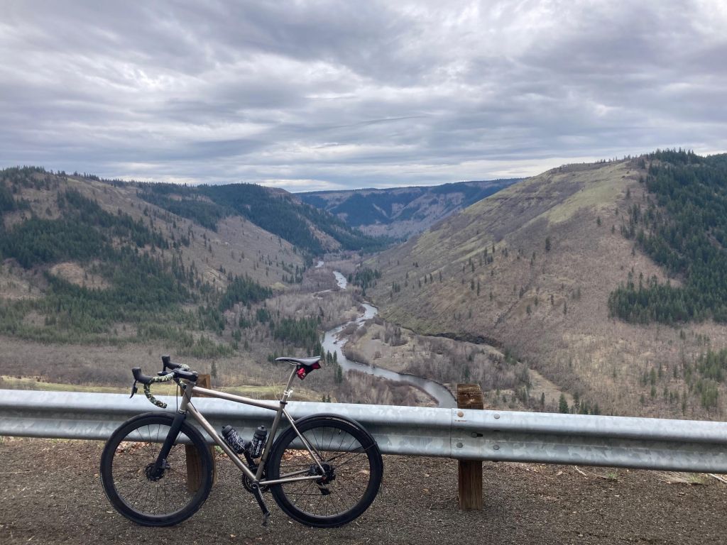 The route starts just outside of White Salmon, WA and follows a large clockwise loop. The most exciting moments include riding through a protected wildlife area, heading towards Mount St. Helens where you might spot Elk and have an awesome view of the mountain. Throw in some scenic uphill sections and breathtaking canyons.