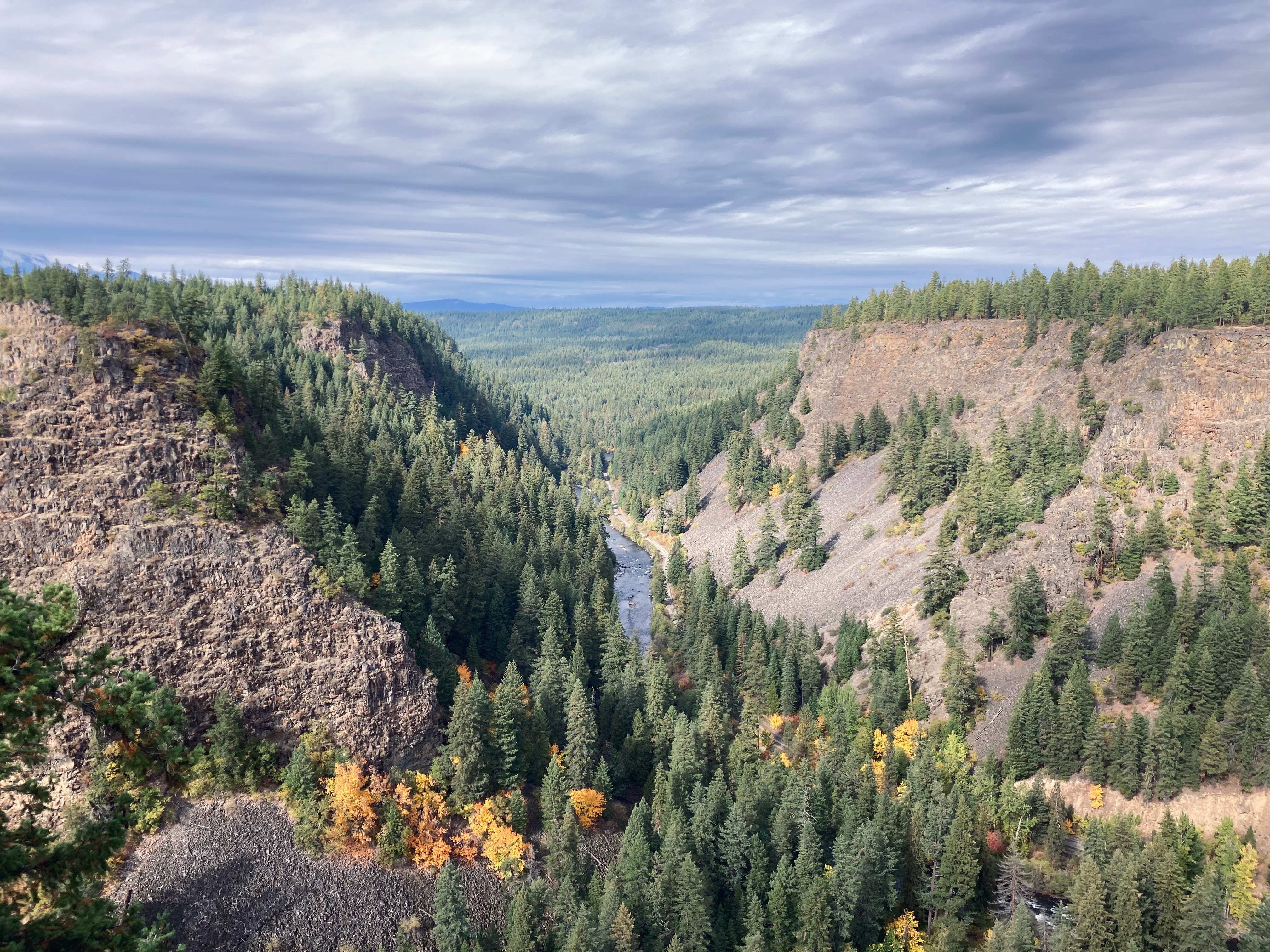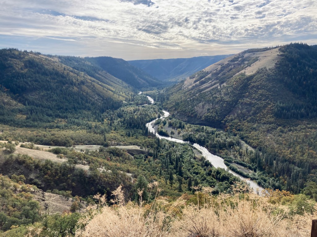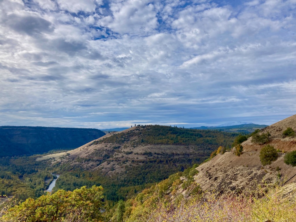After a stop at the market in Glenwood you traverse on the edge of a the Klickitat River Canyon , there is the River Road Overlook at about Mile 42, that’s worth stopping at.