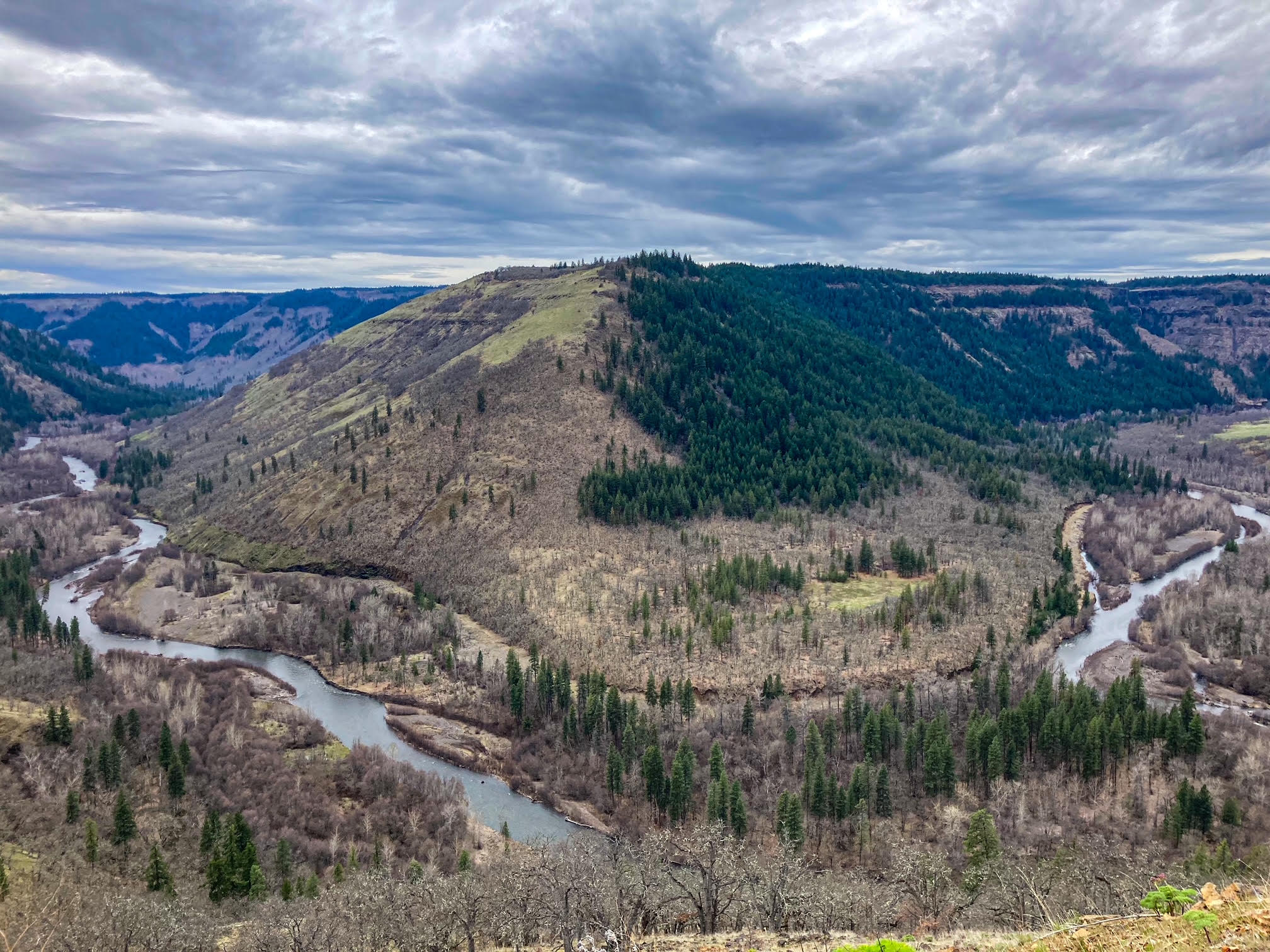 - View points out onto winding Klickitat river.