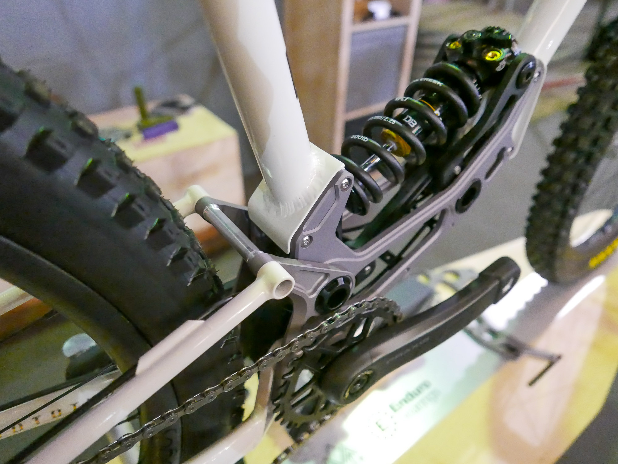New ways of applying technology are always of interest, and the smart guys Will and Colin of Albatross Bikes have invented what I can only best describe as a modular lower suspension that can easily be incorporated into custom frames, allowing frame builders to concentrate on the frame while providing highly engineered technology to enable full suspension.