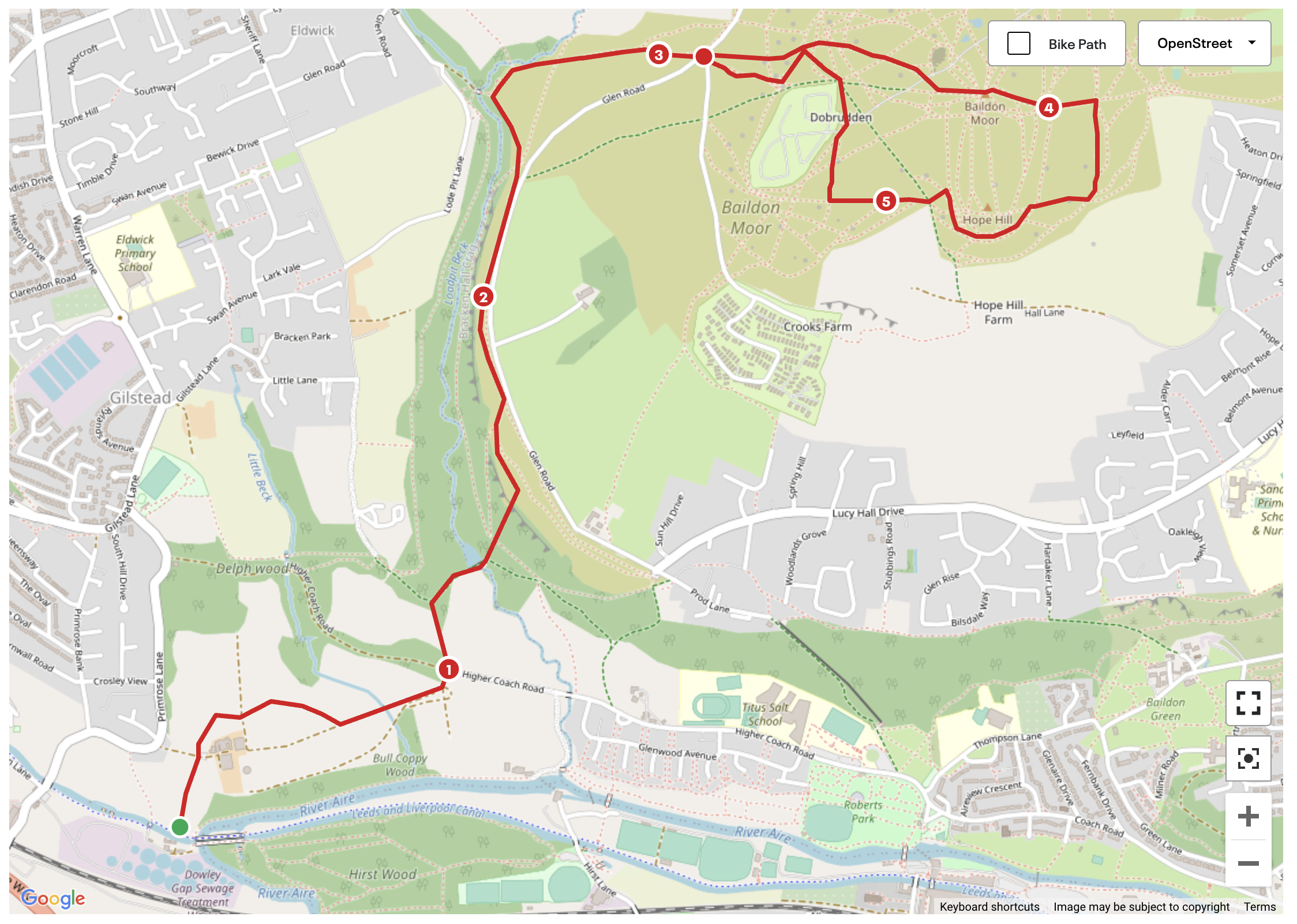 A 6km race in the hilly areas of Bingley and Baildon in West Yorkshire. It starts from a low point in Bingley, goes up to the top of Baildon Moor, and then returns through challenging terrain. Participants can choose to run or ride the course, and depending on their skills, cyclists may end up running with their bikes. Given the conditions of mud, ruts, grass, soil, as well as the uphill and downhill sections, the choice of equipment is crucial.
