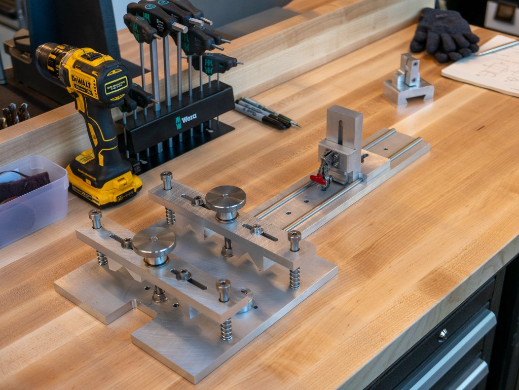 On a side note -the methodical approach really impressed me. Demonstrated in tools and fixtures that Chris has custom made to address bike building problems, improve the quality or speed up the process. He created a simple but accurate fixture for machining a brake bridge, a highly adaptable Unicrown fork jig, and even designed, machined, and assembled a very precise wheel truing stand when he couldn’t find one during the Covid shortages. In their own right, these tools could be a business in itself. These are the kinds of things that a problem solver makes ๐