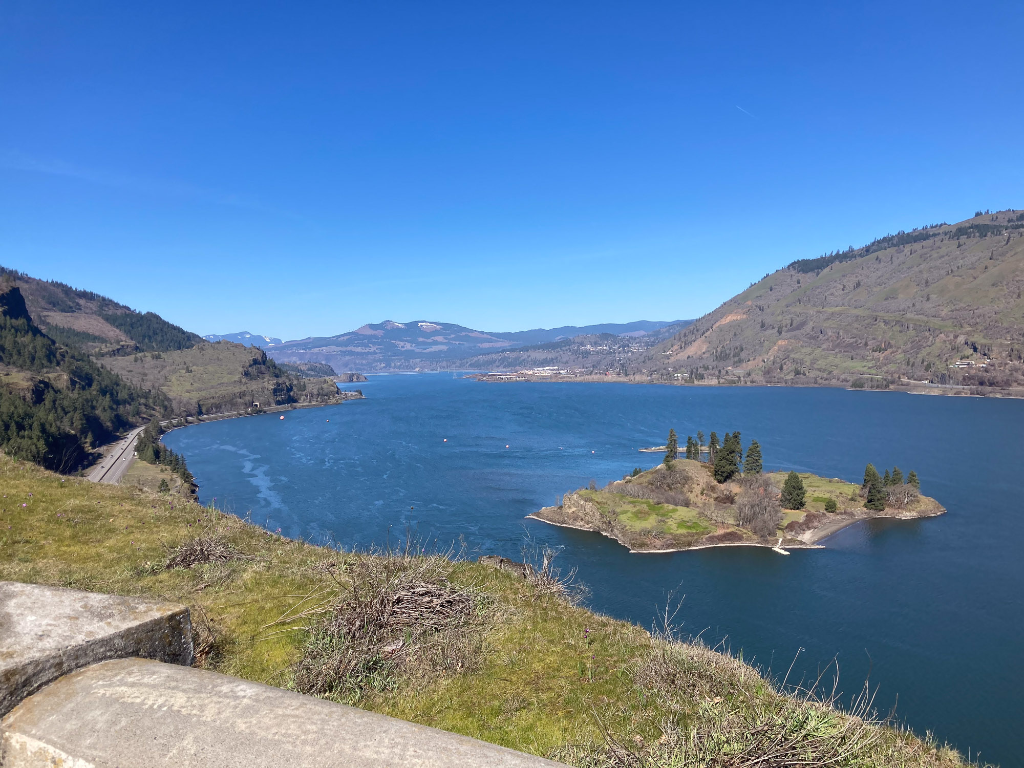 The views from Rowena viewpoint are spectacular, there is often a load of tourists up there so dont be discouraged. Your view is East and straight down the gorge, in early Summer the fields are littered with wild flowers. Come Autumn there is an amazing array of foliage color to be seen. The descent from the viewpoint into The Dalles is super fun on a bike, with twisty smooth roads, this is why I wanted to route back here and not take the quick way down to The Dalles. :-)