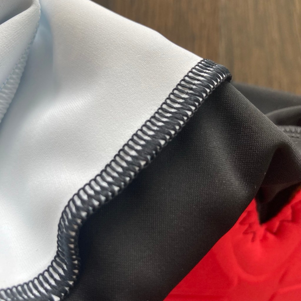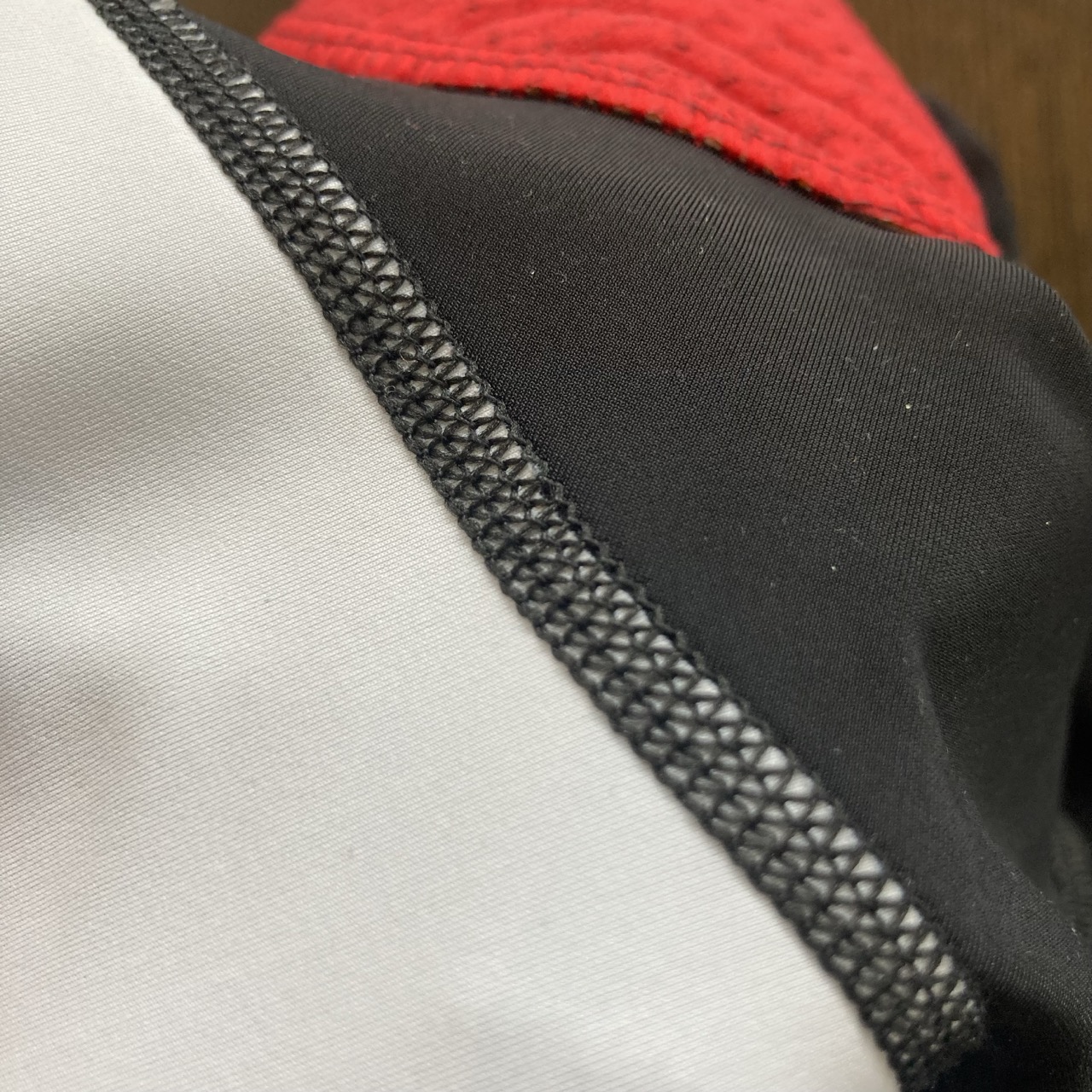 - Seams – generally garment manufacturers that are making things fitting close to the body are looking to avoid seams because they can cause chaffing and skin irritation. Seams are essential to join panels of fabric, panels allow garment form fits and ease of manufacture. So when looking at the inside seams of the garment definatley make sure there are no hard edges, feel the material and the threads, they should not feel corse or raspy, the seam should lay flat with the direction of the material and not sticking out. Staying closer to mid to higher end bib shorts will get you the good stitching and quality seams, but its worth checking. See images at end of article.