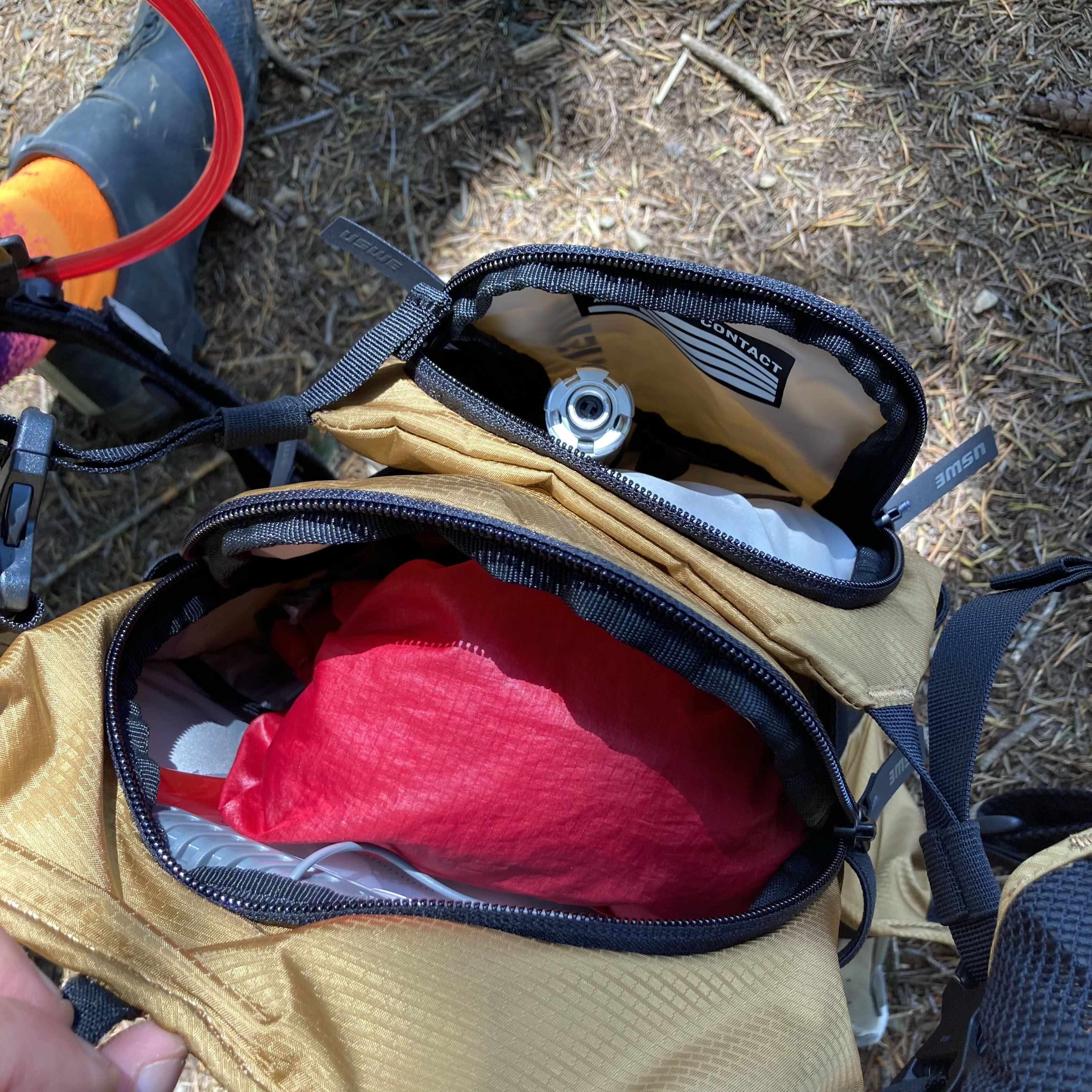 | The harness is really good, feels very in-place, even when sending it down hills with fast turns and hops. It stays put and doesn’t jostle around on the body, solid even with 2.5l of water. This is the feature that makes this pack a real winner for me. | On a hot day, you are going to get sweaty under the front straps, it is what it is, but a notable change coming from a hip style pack. |