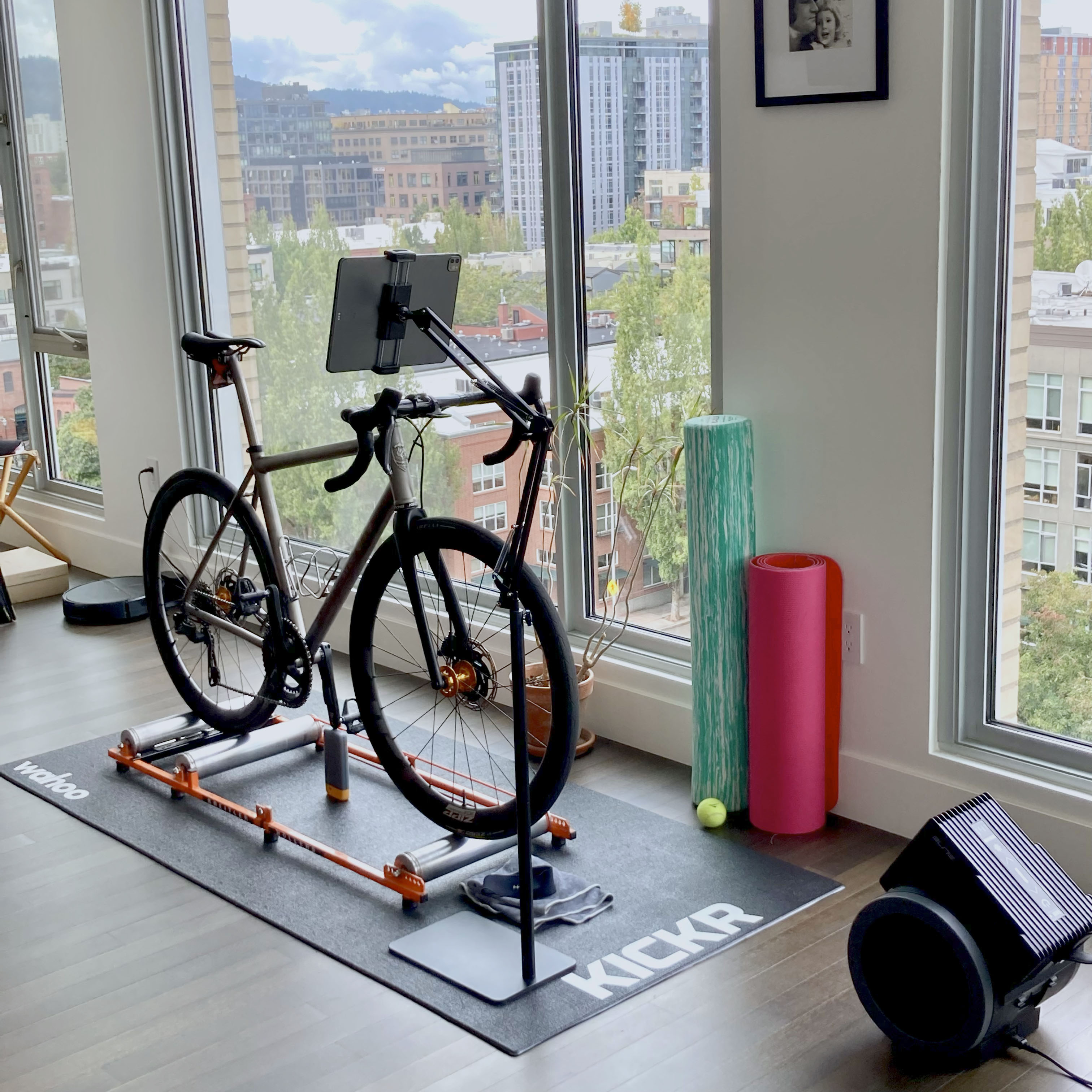 A good protective matt is needed in most cases, for sweat collection, protection from cleat damage but also for absorbing vibrations if you live in apartments with many neighbors I went with a Wahoo matt, i’m sure there are very similar but less expensive ones. This one is pretty thick foam and has lasted me many years even- $90 – here